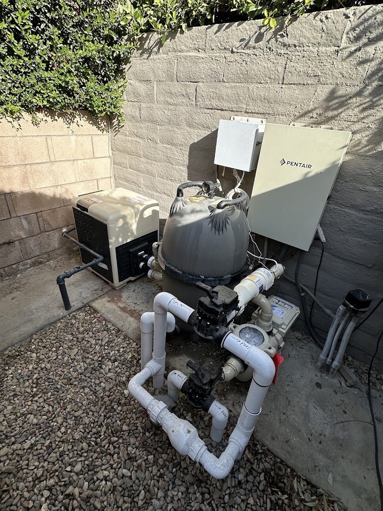 Professional Pentair equipment installation with proper plumbing and electrical work